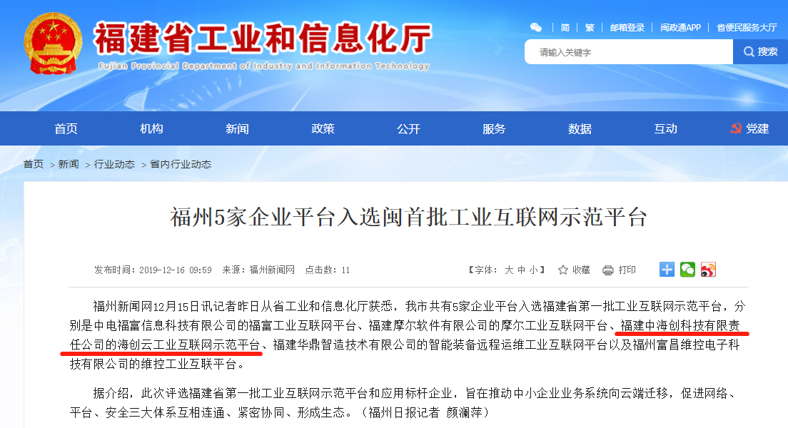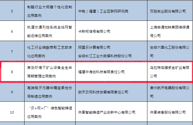 福建爱体育电竞登录《复杂环境下矿山设备全生命周期管理》项目成功入选工信部2019年工业互联网平台创新应用案例。